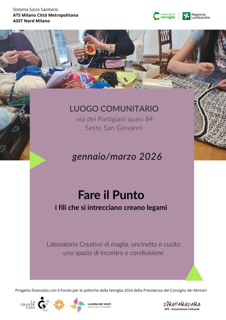 Un luogo di incontro dove poter lavorare a maglia, ad uncinetto oppure ricamare e allo stesso tempo raccontare, ascoltare e riflettere. Un gruppo di condivisione aperto a principianti od esperte. A disposizione filati, tessuti, lane e cotoni.