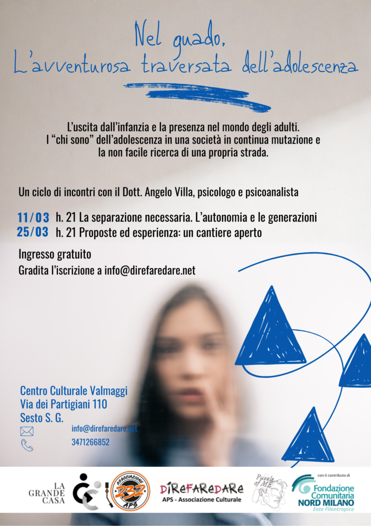 Negli incontri, rivolti a genitori, educatori, insegnanti, volontari, si rifletterà su adolescenza, identità, disagio giovanile, comunicazione intergenerazionale, alternando momenti di comunicazione da parte di Angelo Villa, psicologo e psicanalista, con momenti di ascolto e confronto degli adulti presenti.